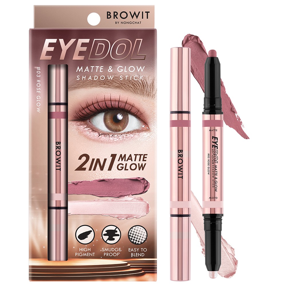 Browit Eyedol Matte & Glow Shadow Stick [0.5g + 0.5g] #03 ROSE GLOW บราวอิท อายดอลแมทท์แอนด์โกลว์แชโดว์สติ๊ก 0.5G+0.5G อายแชโดว์เนื้อครีม รูปแบบแท่ง 2 เฉดสีในแท่งเดียว สี 03 โรสโกลว์
